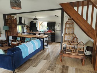 Avant 05.07 - Aprés 29.08.2026, arrivée avec rendez-vous préalable (Résa d'une semaine acceptée si continuité dans le planning). LOCATION SAISONNIÈRE MEUBLÉE Lieu : Lit et Mixe Villa (Offre #35#) * 10km de l'océan, tous commerces à 1 km, Au calme lisière forêt, sur 800m² de terrain clos, séjour-salon, cuisine, 3 chambres, SdB + SDE, Wc, terrasses Tous les équipements dans la maison, ambiance personnalisée trés cosy Env 100 m² hab, équipée pour 6 pers max