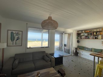 Villa mitoyenne de plain pied sur dune de sable, séjour,