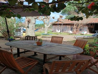 Priorité est accordée aux locations de 2/3 semaines . Avant 05.07 - Aprés 23.08.2025, arrivée avec rendez-vous préalable (Résa d'une semaine acceptée si continuité dans le planning). LOCATION SAISONNIÈRE MEUBLÉE Lieu : Saint Julien Bourg Villa (Offre #16#) 9 km de la plage, proche commerces et forêt, calme , Demeure e sur 1200m² de jardin clos, séjour-salon, cuisine, 5 chambres, SdB+SdE, 2Wc, terrasse sans vis vis. Piste cyclable et/ou navette gratuite Env 180 m² , équipée pour 8/9 pers max